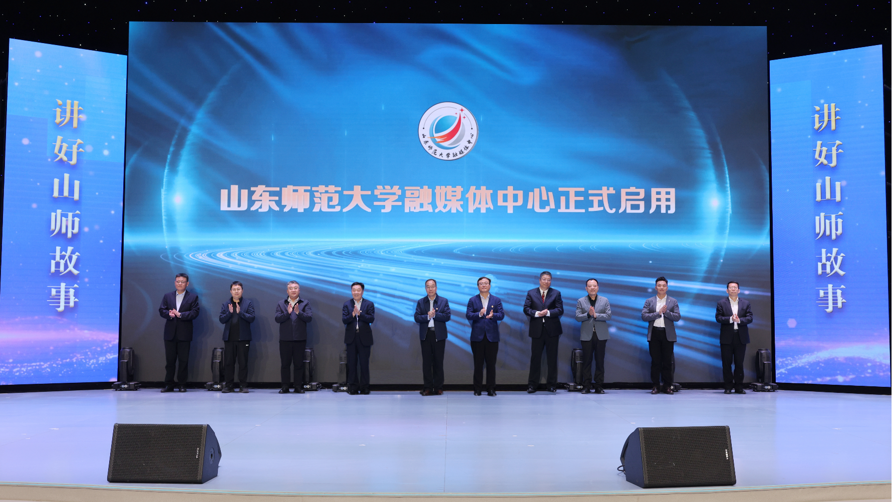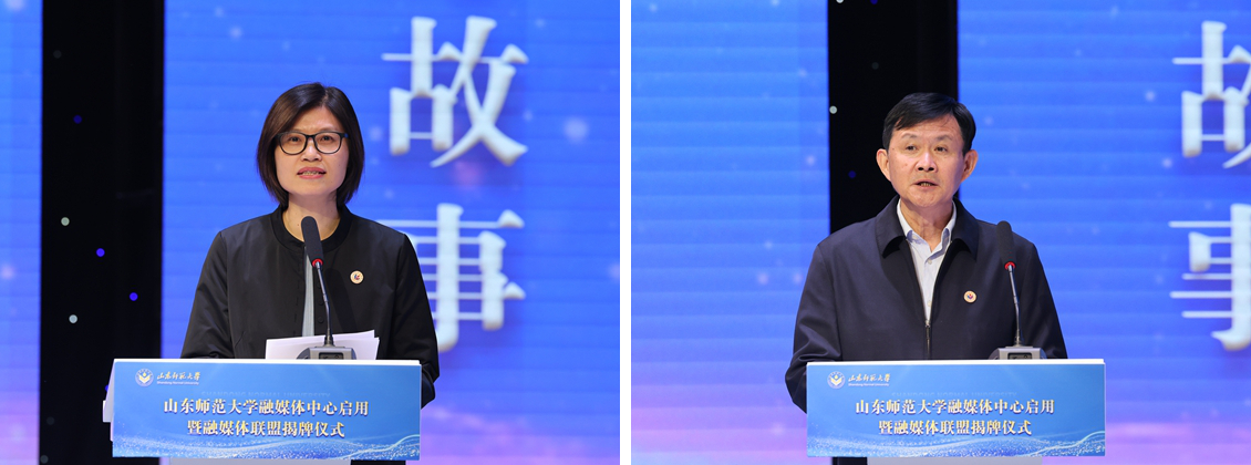 与会嘉宾共同启用“山东师范大学融媒体中心”。