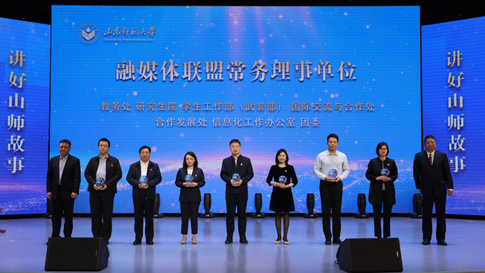 仪式上,与会领导颁发融媒体中心特聘导师、融媒体中心学生团队代表证书。在“山东师范大学融媒体联盟”揭牌仪式上,发布了《山东师范大学融媒体联盟章程》,与会领导为16个融媒体联盟常务理事单位授牌。